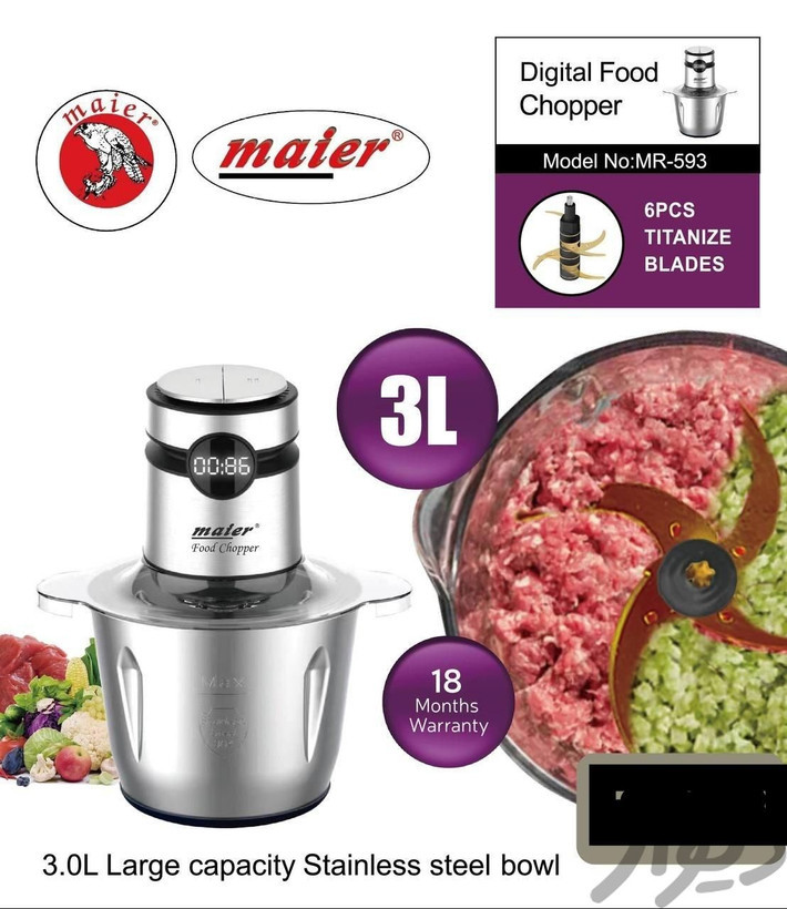 خردکن مایر مدل MR-593 با گنجایش 3 لیتر امکان خرد کردن مقدار مناسبی از مواد غذایی را در یک بار استفاده فراهم میسازد. یکی از ویژگیهای بارز خردکن مایر MR-593، جنس تیغه آن است که از تیتانیوم ساخته شده است. تیغههای تیتانیومی به دلیل خاصیتهای ضدزنگ و دوام بالا، کارایی بالایی در خرد کردن انواع مواد غذایی دارند. جنس تیتانیوم از کند شدن زودهنگام تیغه ها جلوگیری میکند. این امر به ویژه در خرد کردن مواد سفت و سخت، مانند گوشت و سبزیجات، اهمیت فراوانی دارد.